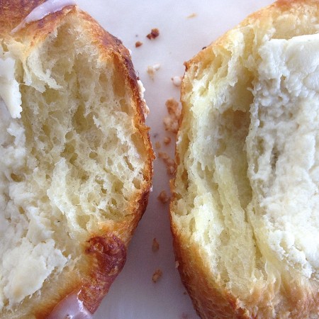And the texture? That's a 2-hour rise on the left – see all the air holes? On the right, the 20-minute rise. The 20-minute pastries were definitely denser and heavier.