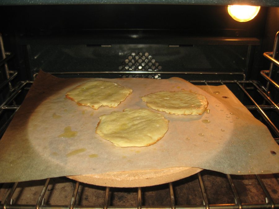 Place the baking sheet(s) into the oven, or transfer the parchment directly to a preheated pizza stone. Bake for 5 minutes; for crispier breads, bake an additional 3 to 5 minutes, until the edges are golden brown.
