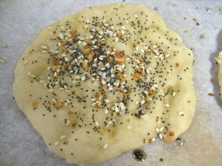 Repeat with the remaining dough; you should be able to get about 6 rounds onto each baking sheet. Sprinkle with seeds or topping seasonings if desired.