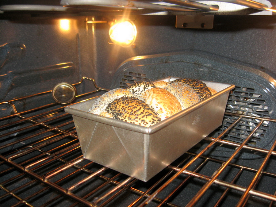 In the past, any time that I had tried to put seeds on a loaf of bread most of them had to be scooped up and sprinkled back on the bread after slicing. Like blueberries in Sal's bucket they would plink, plank, plunk off the sides and top of the loaf – leaving it stripped down to its bare skin, as it were.