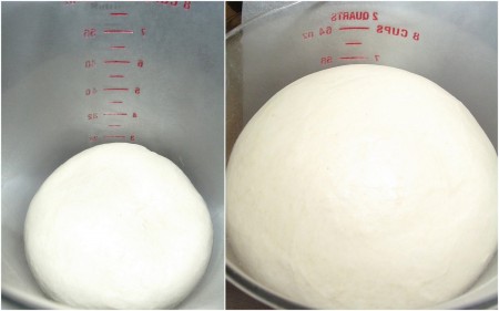 An advantage of using the measuring cup is that I can quickly see just how much the dough has risen. It's more than doubled in bulk - going from 3 to 7 cups.