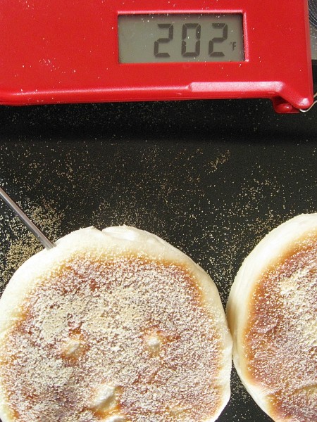 Cook the muffins for about 10 to 12 minutes on each side, or until an instant-read thermometer inserted in the center of a muffin registers 190°F. The edges may feel a bit soft; that's OK.