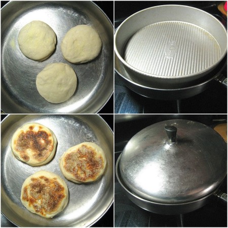 Continue cooking for 7 minutes or so; then remove the pan, and turn the muffins over. Place the lid on the pan, but don't set it on tight; leave a small opening for any steam to escape. Cook the muffins for an additional 8 to 10 minutes, until their bottom sides are browned.