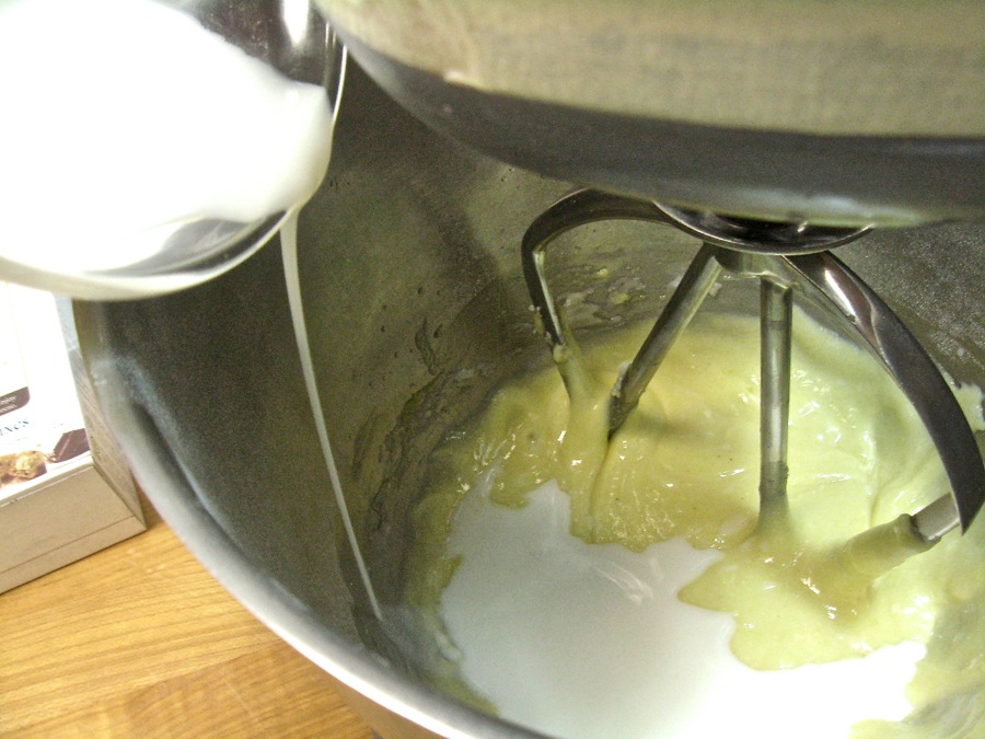 Add 1 cup (227g) of milk, 1/4 cup at a time, blending in between additions.