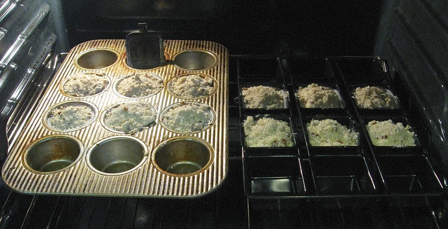 Notice the square muffin pan I'm using here; it's slick – both literally, and figuratively. I lined some of the cups with paper liners, to see how a round liner would do in a square cup. The answer is: just fine.