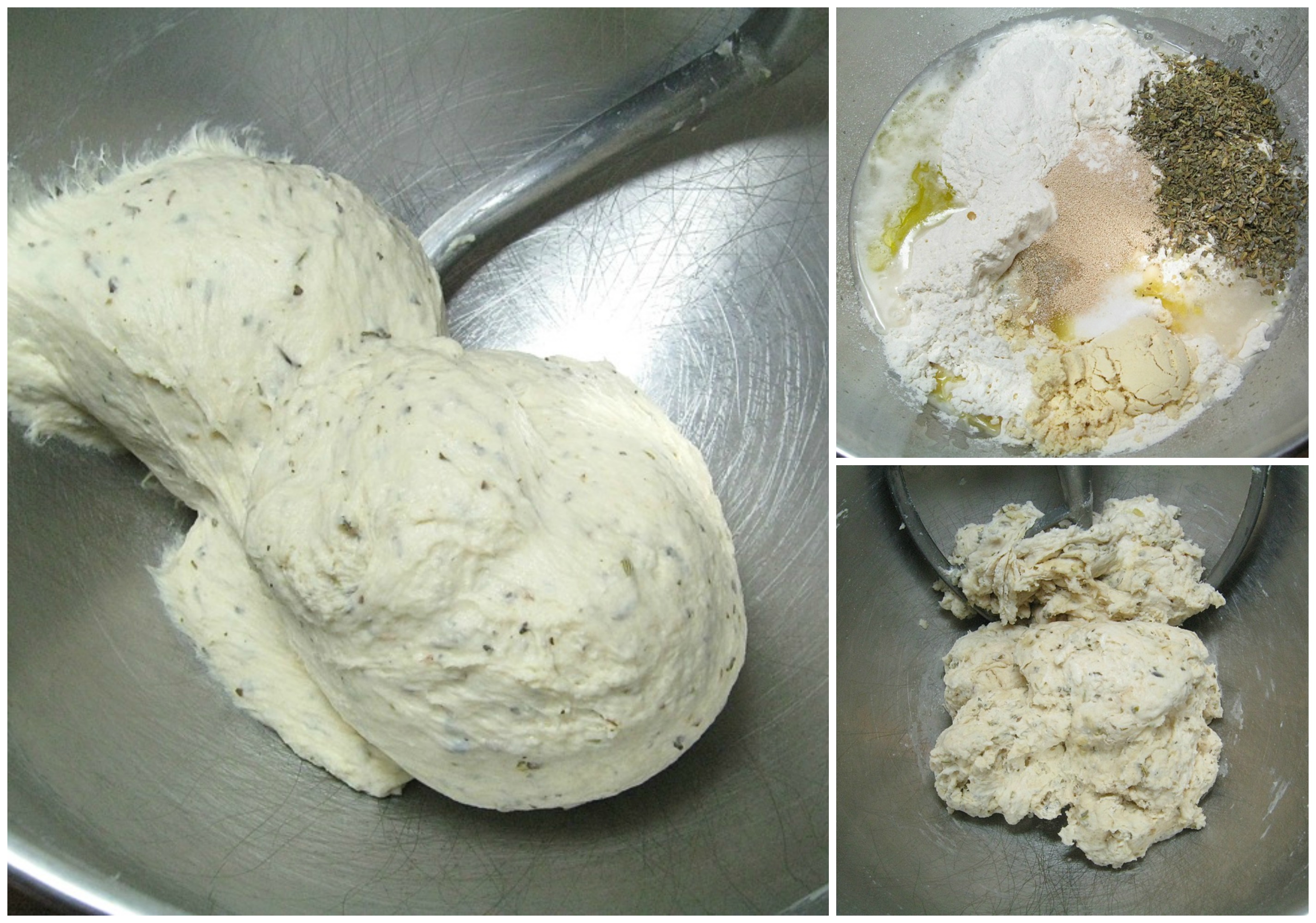 Mix and knead the dough ingredients — by hand, mixer, or bread machine set on the dough cycle — to form a slightly soft dough.
