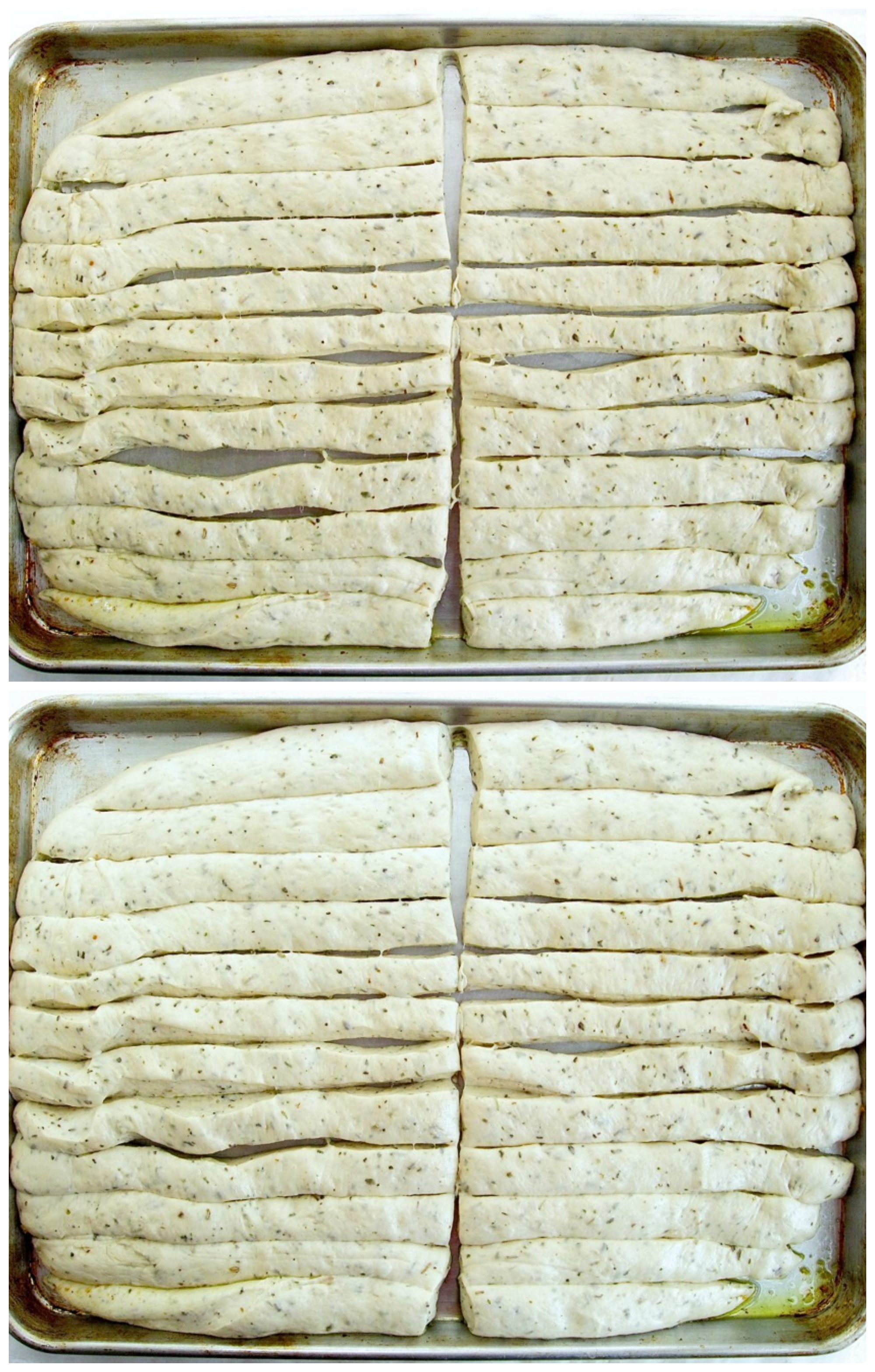 Cover and let the strips rise at room temperature for 45 to 60 minutes, until slightly puffy.