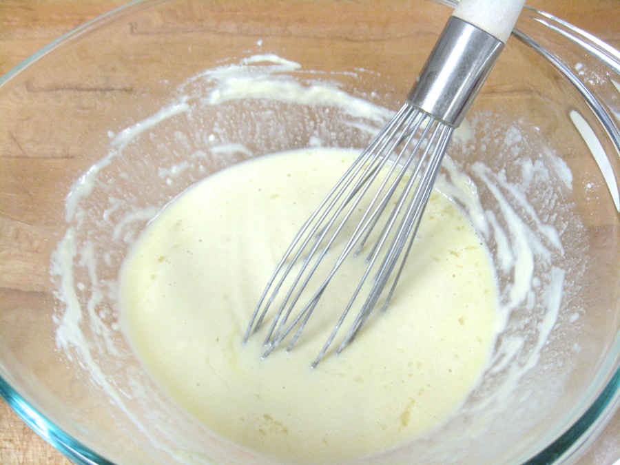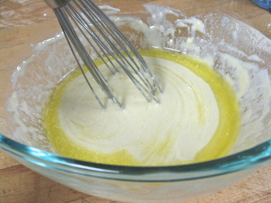 Stir everything together, then add the rest of the liquid ingredients and combine thoroughly. Don't fret over small lumps, they won't stick around for long!