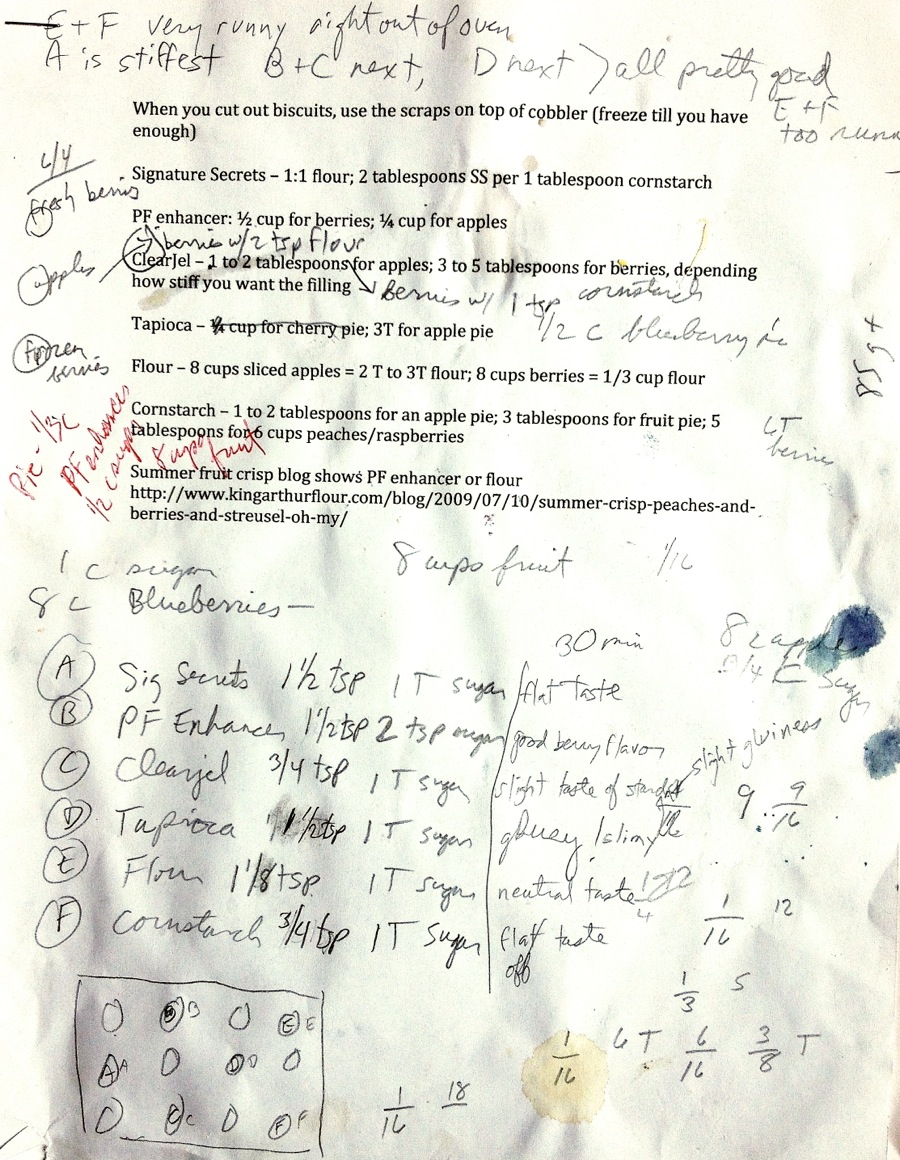 So, after several rounds of testing over a few days (which did, eventually, include some complete-with-crust, full-size pies), I've chosen my two favorite fruit pie filling thickeners: