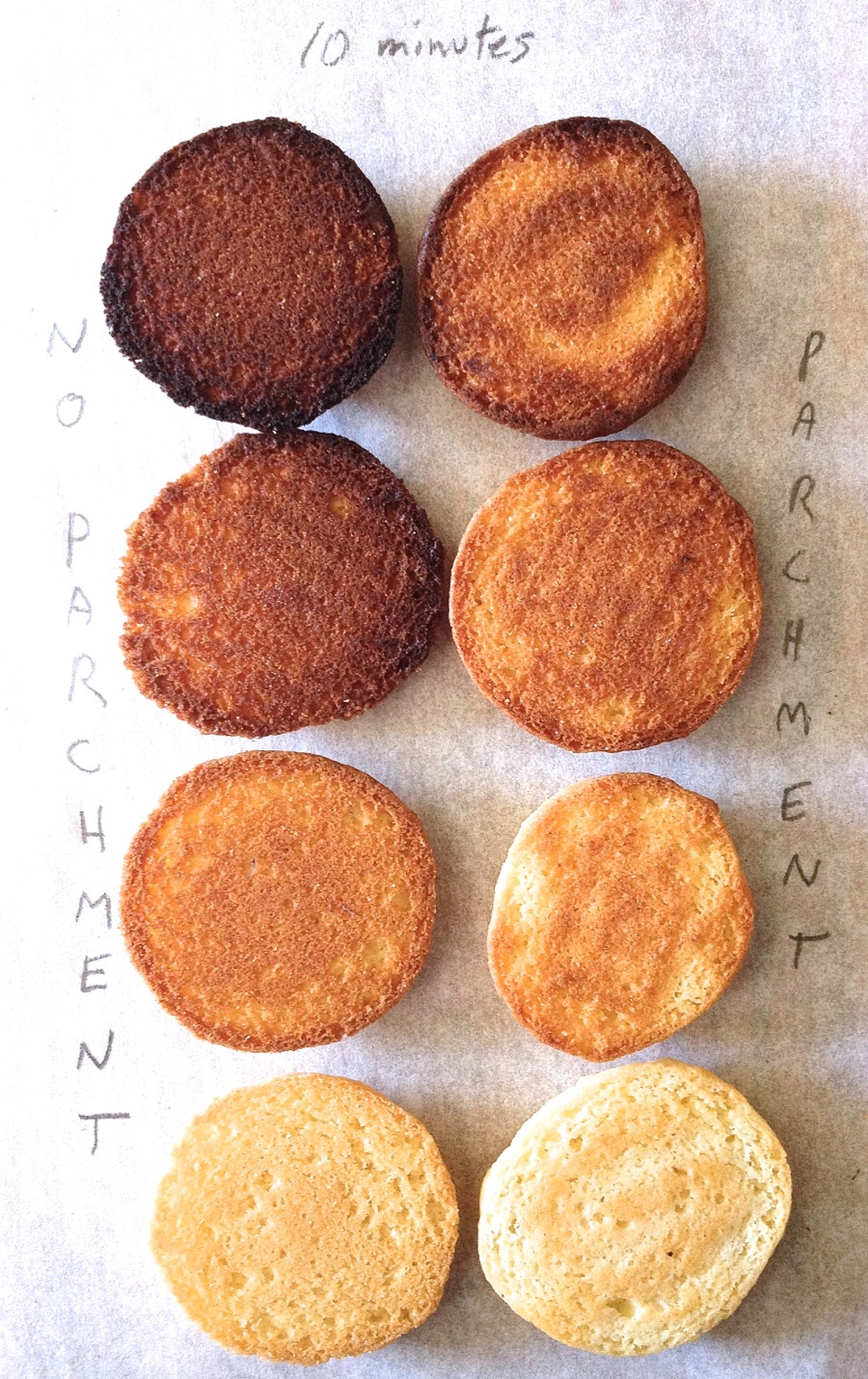 And while I'm at it, is there a difference in browning when you use parchment, vs. none?