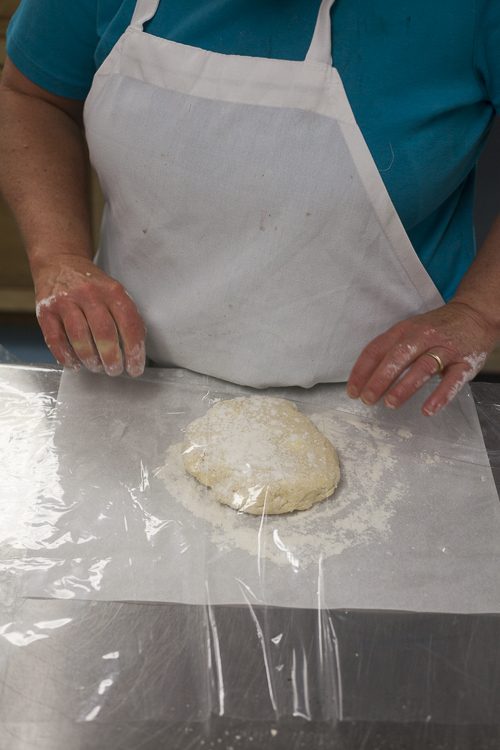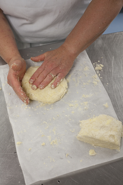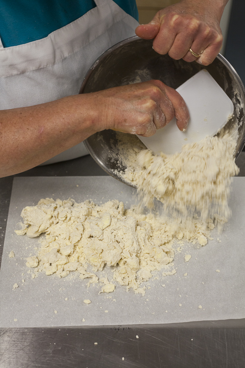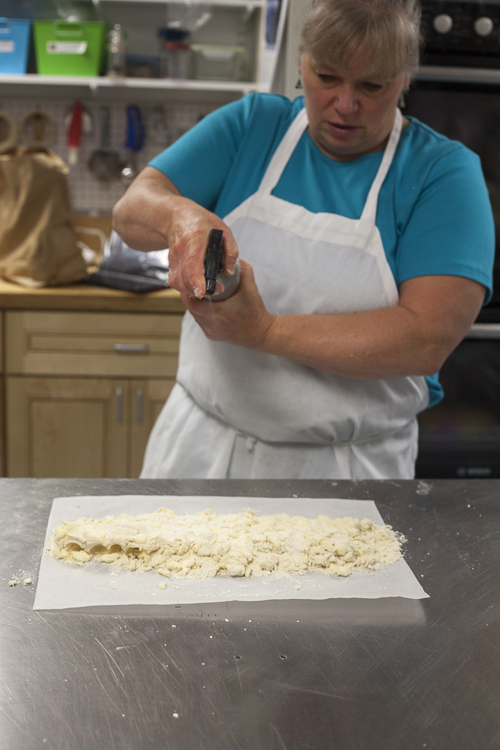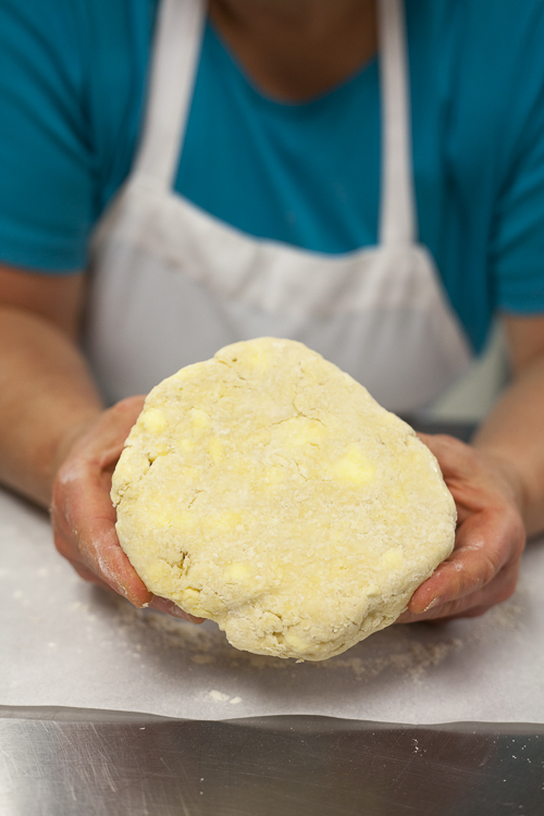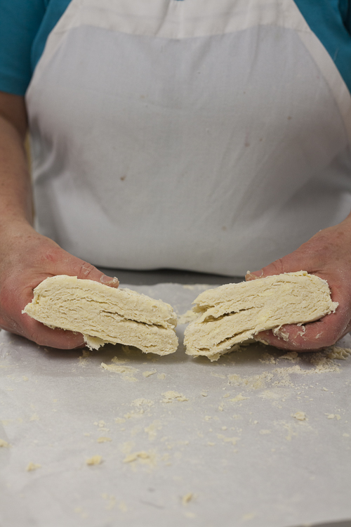 What a difference a little rest makes. See how the dough has changed? Not dusty or crumbly, just ready to go. And still big butter chunks visible (remember, those are flakes in the making!).
