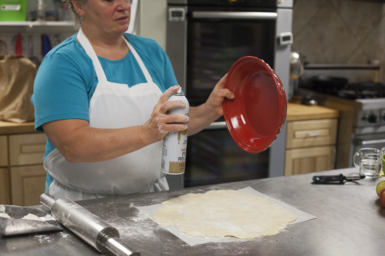 Ahh, the poor sacrificial first slice. How many mangled first servings of pie have you experienced? No one tells you this, but you can (and if your dough is relaxed, should) grease your pan. It’ll make taking slices out easier, but will also help brown the bottom.