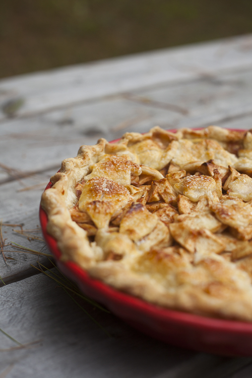 Place, brush with milk or cream, sprinkle with sparkling sugar, bake. I love this technique because the leaves ride down on the filling as it bakes, avoiding that big old gap you sometimes get with 2-crust pies.