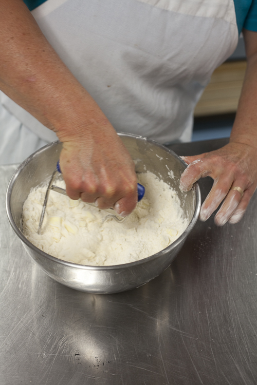 First things first. Add the salt to the flour so your crust doesn’t taste flat (especially important if you’re using unsalted butter). Stir together. Next? Flaky or tender: both adjectives you want to see applied to your finished crust. Want both? Keep it cool (the butter, that is). Should be right out of the refrigerator.