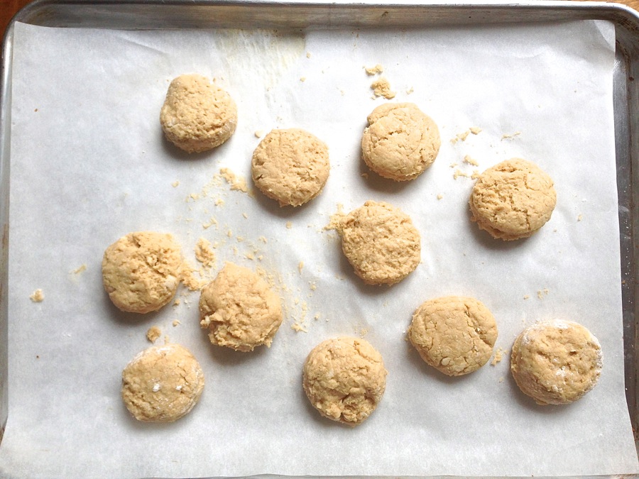 Place the biscuits and parchment onto a baking sheet, leaving 2" between them. If you're not using parchment, place the biscuits onto a lightly greased baking sheet.