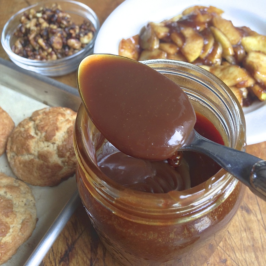 We'll start with some homemade caramel sauce.