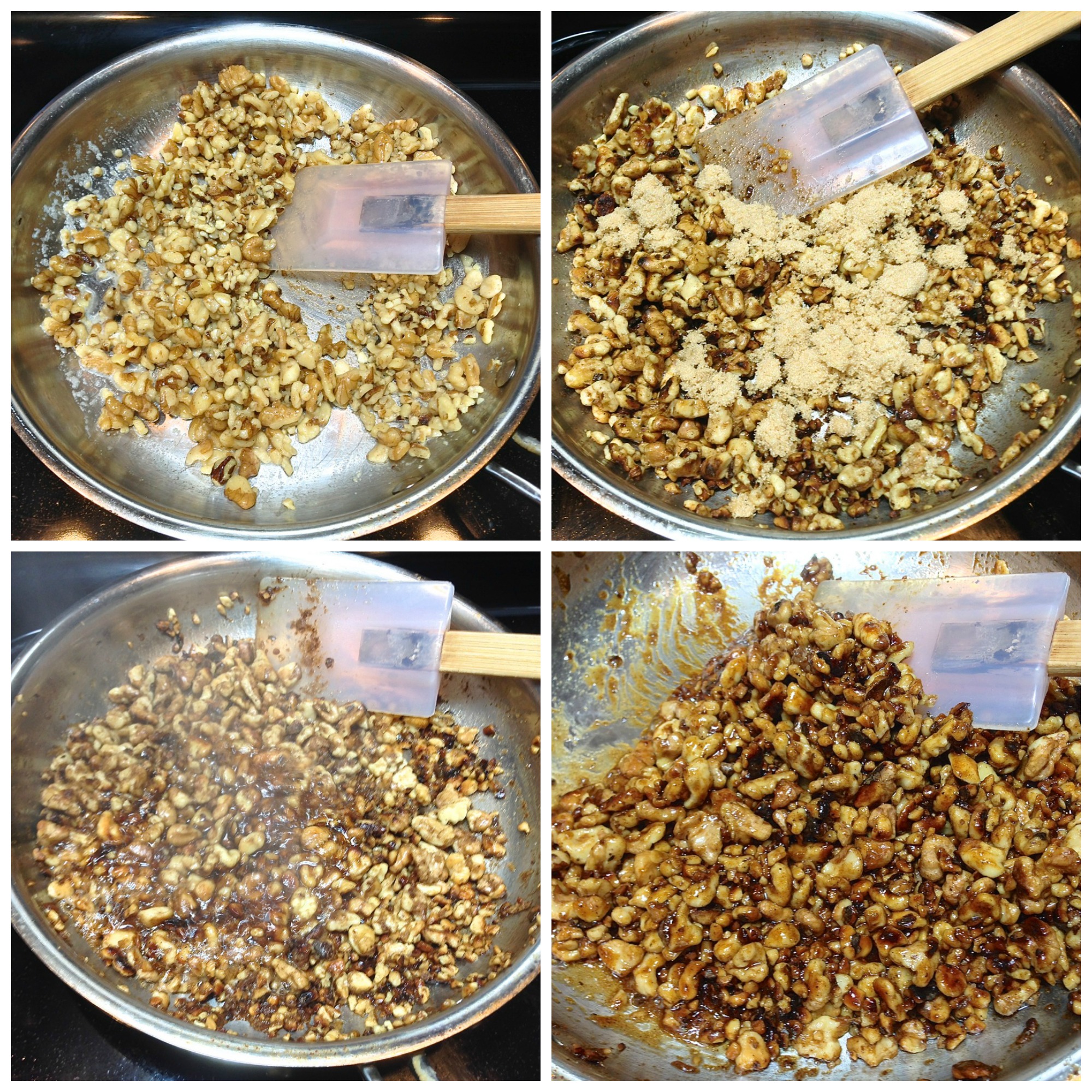 Melt 1 tablespoon (14g) butter and add 1 cup (113g) coarsely chopped walnuts. Cook, stirring occasionally, until the nuts are barely starting to brown; this can happen quickly, so keep an eye on them.