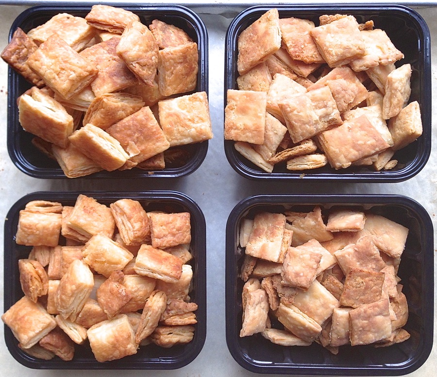 But one thing was abundantly clear: the all-butter crust (above left) made a lighter crust, with more defined flakes than the butter/shortening combination (above right).