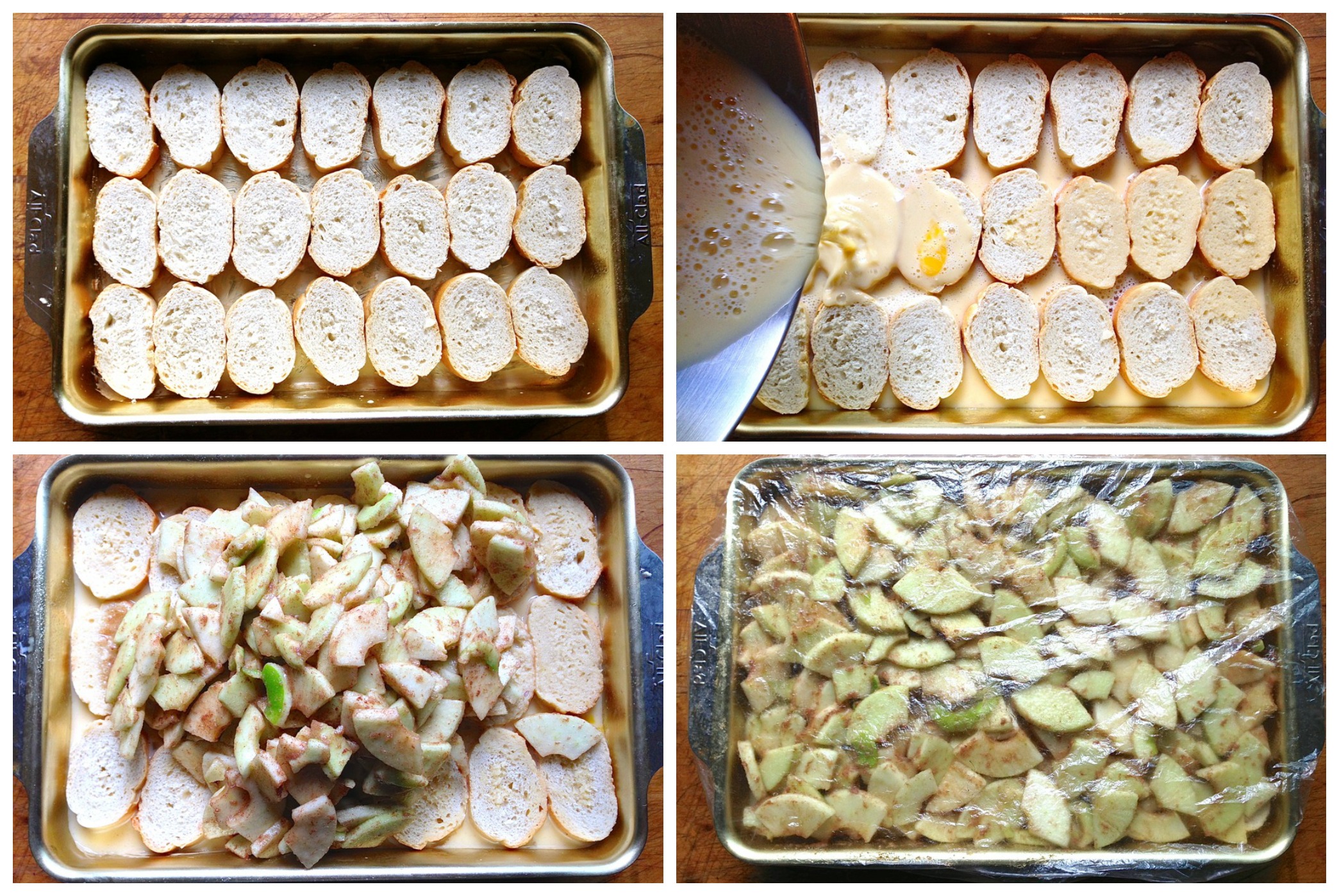 To bake the French toast right away, preheat the oven to 375°F. Bake for 30 to 40 minutes, until the apples are soft and the eggs set. The apples on top will never really brown; that's OK.