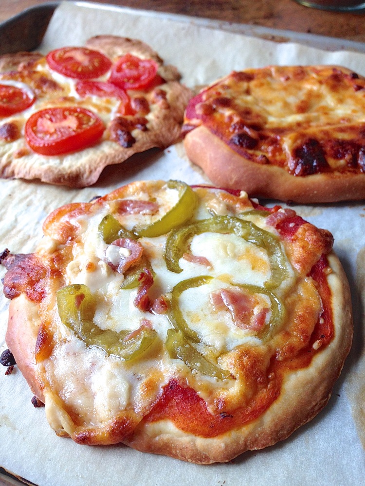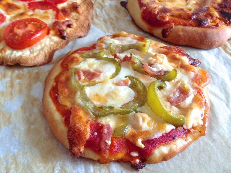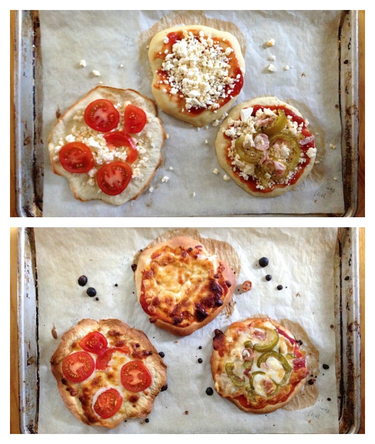 Top the pizzas as desired. This is the fun part – let everyone do their own thing.