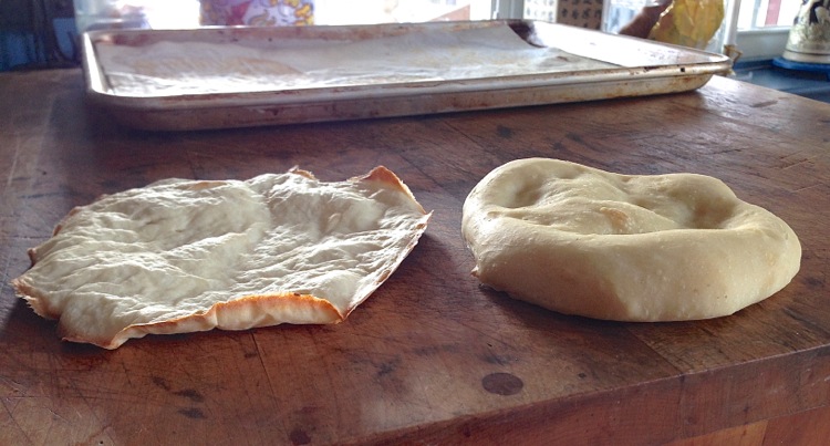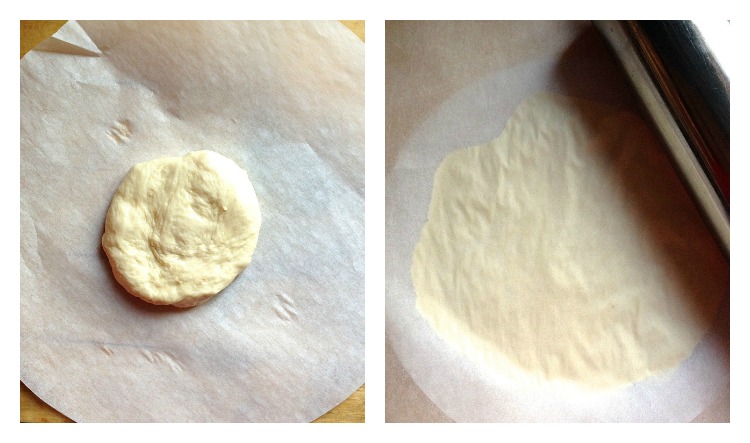 Gently stretch each piece into a flattened disk about 5 1/2" in diameter. Lay the disks on lightly greased or parchment-lined baking sheets (3 or 4 to a sheet), and let them rest while you're preheating the oven to 425°F.
