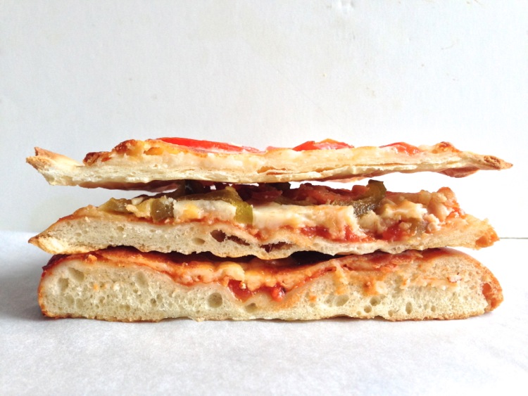 Here's a shot of all three thicknesses – see why that thin crust on top is called "cracker"?