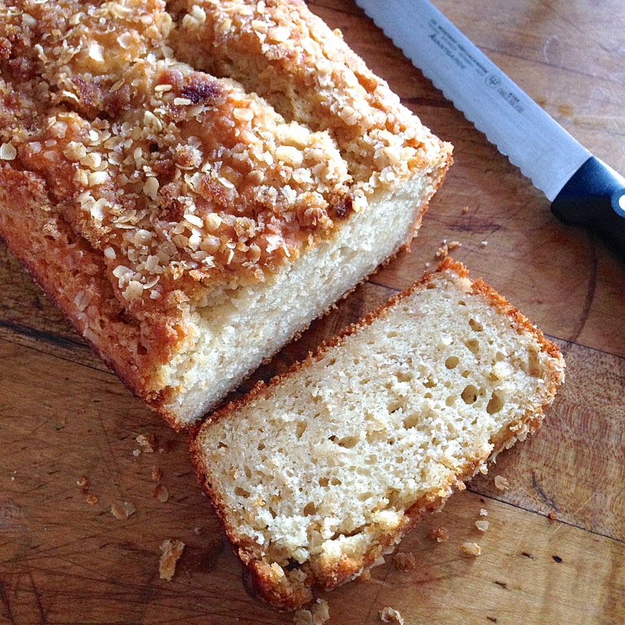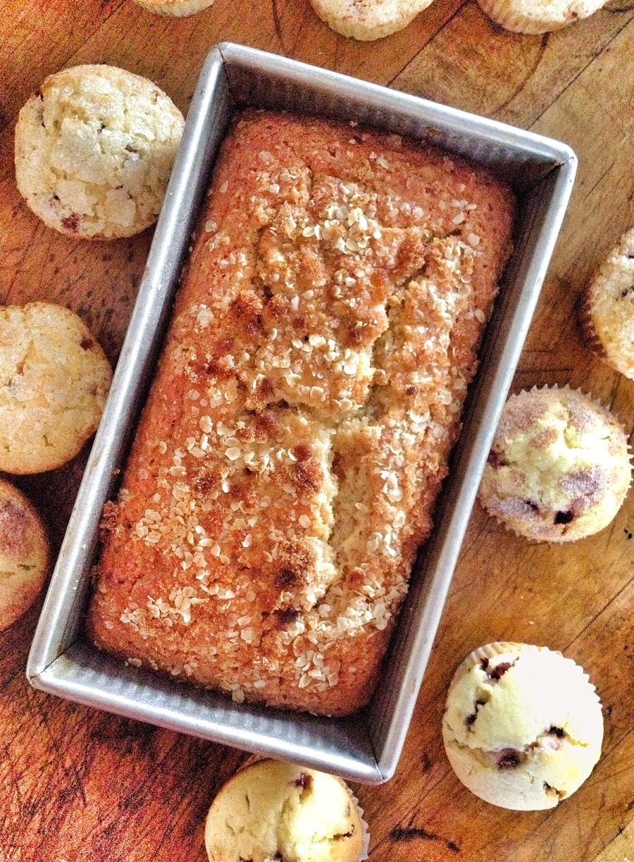 Prepare the batter using the same ingredients called for in the muffin recipe. I dressed the loaf up a bit by sprinkling the top with rolled oats and brown sugar.