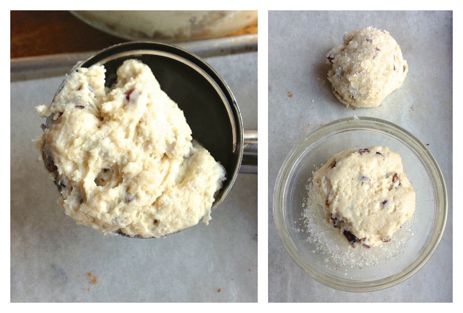 Scoop golf-ball sized pieces of dough onto the prepared baking sheet; a muffin scoop filled about 2/3 full makes the ideal size.