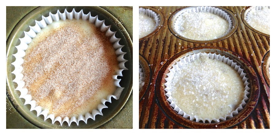 Garnish with the sugar of your choice, if desired. That's cinnamon-sugar on the left, coarse white sparkling sugar on the right.