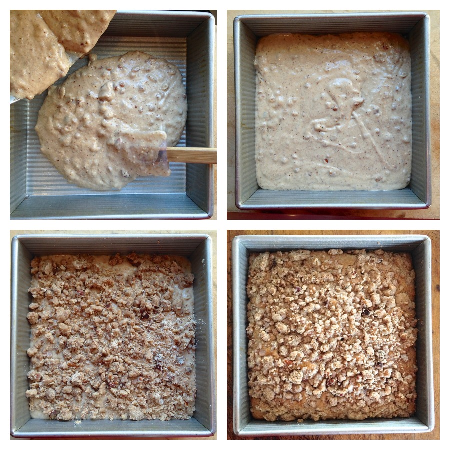Pour the batter into the prepared pan, and sprinkle with the topping.