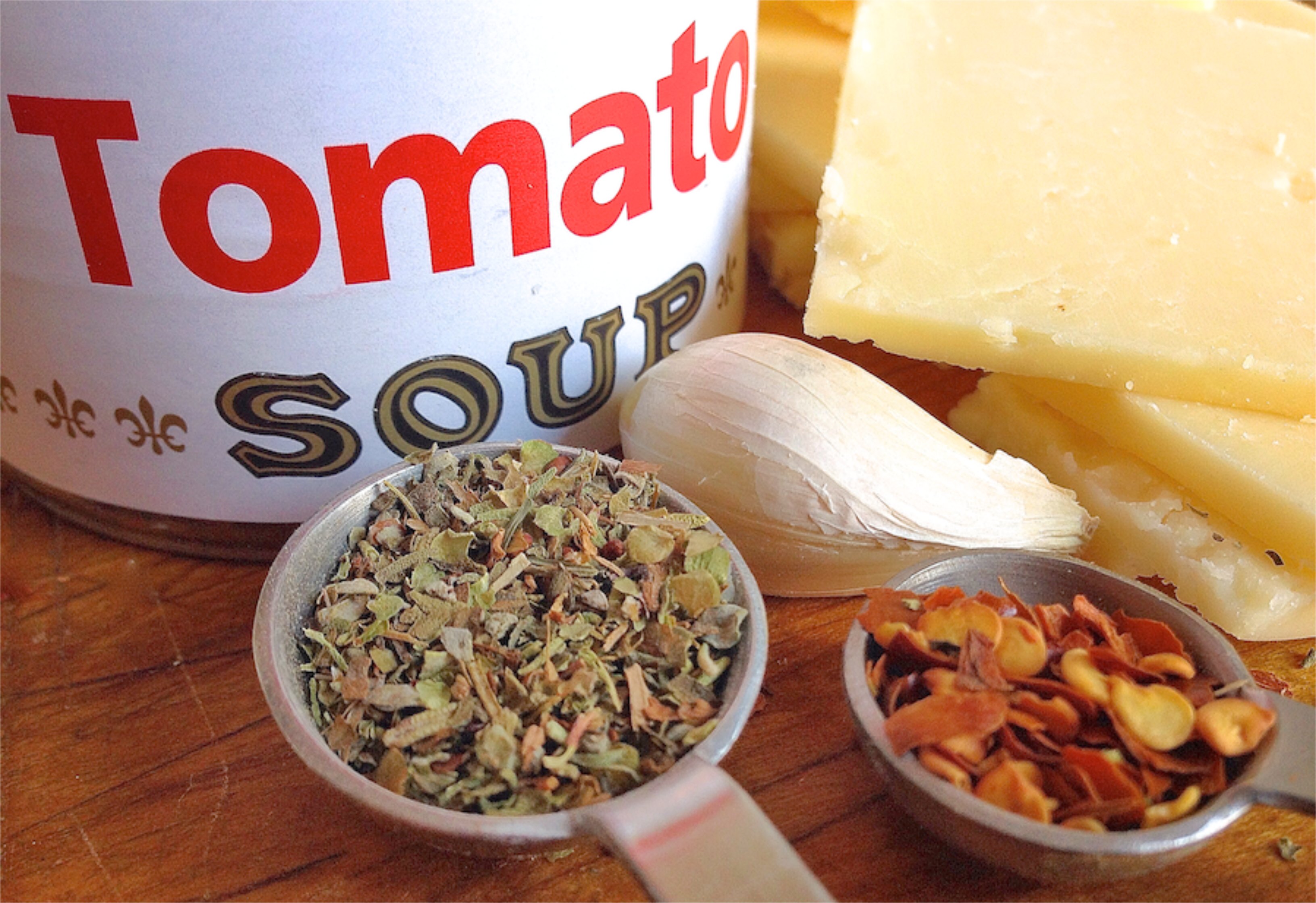 Condensed tomato soup, made Italian by adding "orégano" and garlic.