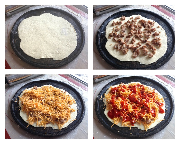 From here, it's easy as pie: divide the dough in half, roll each half into a circle, and place on your pans.
