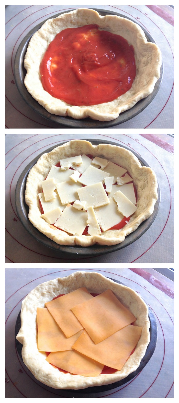 Apparently, in trying to envision an American "pizza pie," Gourmet's recipe writers started with pie plates and pie pastry (or biscuit dough, as an option).