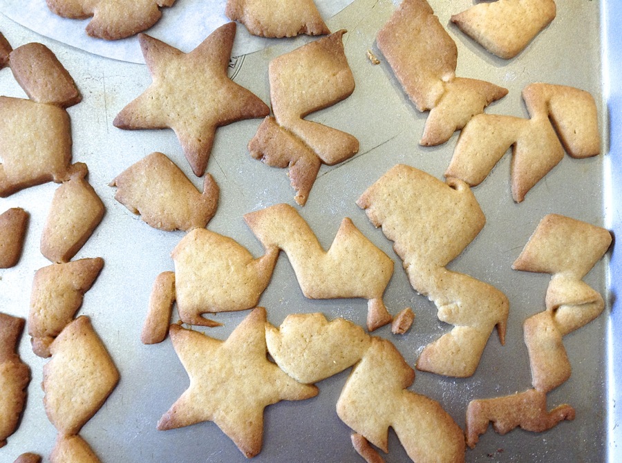 These are the scraps from my roll-outs, all mixed up. When cutting out rolled cookies, I very seldom bother to "gather and re-roll the scraps." I mean, why bother? All it does is make tough "pretty" cookies.