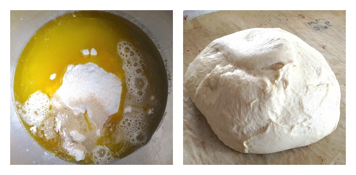 Wow, that's a lot of olive oil. And I can tell by looking at the flour/liquid ratio that the dough, even using high-protein bread flour, is going to be unworkably sticky; so I cut back the water by 1 ounce (2 tablespoons). The result is a nice, smooth dough.