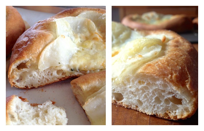 ...four thick, billowy pizzas. The potatoes are perfectly cooked; the cheese melted and just beginning to turn golden, without being rubbery or tough.
