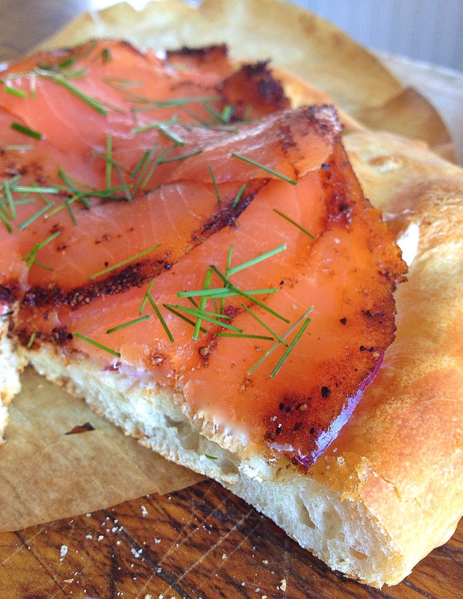 This pizza Is every bit as tasty as it looks. Wonderfully light crust, with lots of crunch and a soft interior; and the topping – well, you can never go wrong with sour cream and smoked salmon, right?