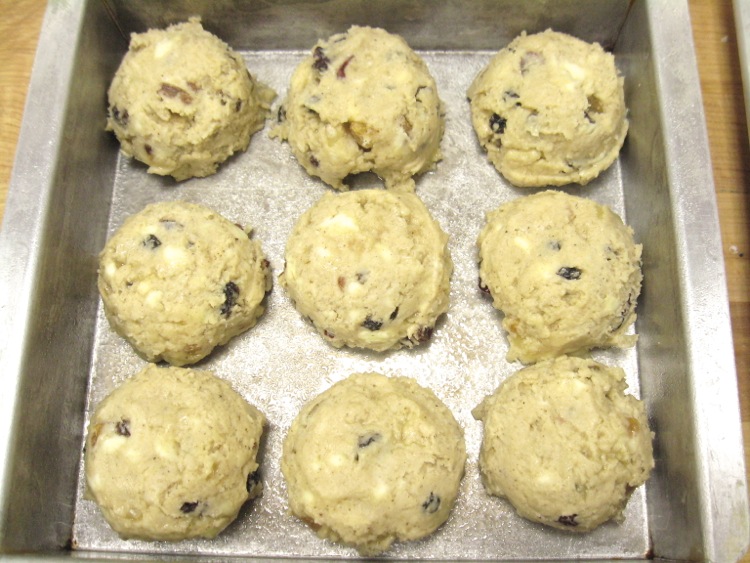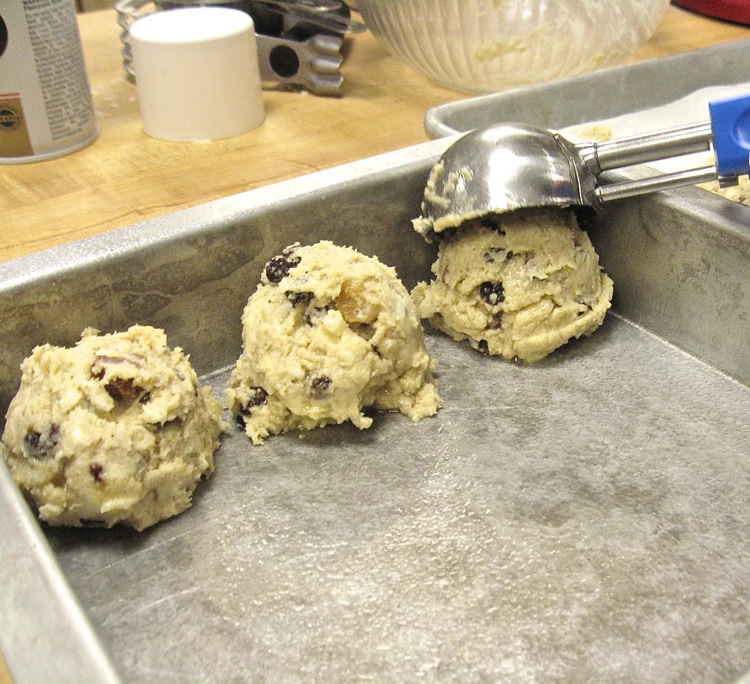 drop the dough portions into a lightly-greased 8" x 8" pan, or onto a parchment-lined baking sheet.