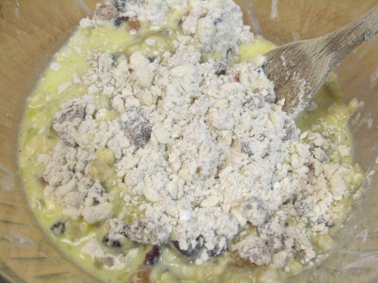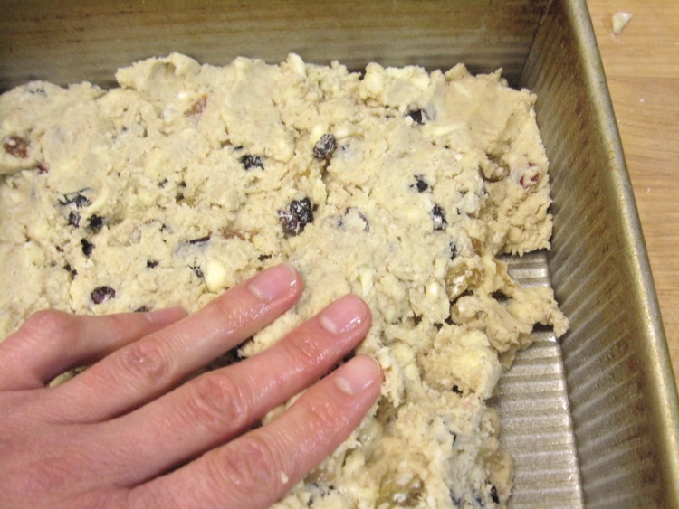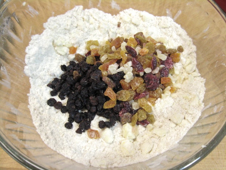 Stir in 1/4 cup (35g) currants (you can also use dark raisins), and 1/2 cup (71g) dried fruit.
