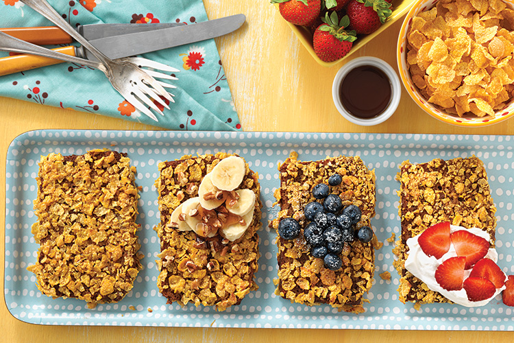 If desired, you can press the wet bread into crushed flaked cereal before adding to the fry pan. That's what our test kitchen team did – using cornflakes – for the main photo above.