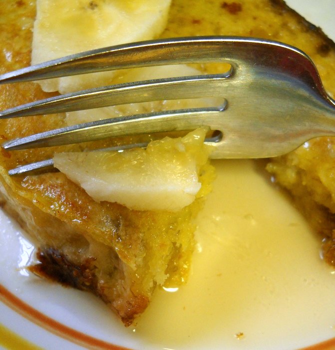 Usually you want to soak the bread for a few seconds on each side, but banana bread is more delicate and crumbly; so just a quick dip is sufficient.