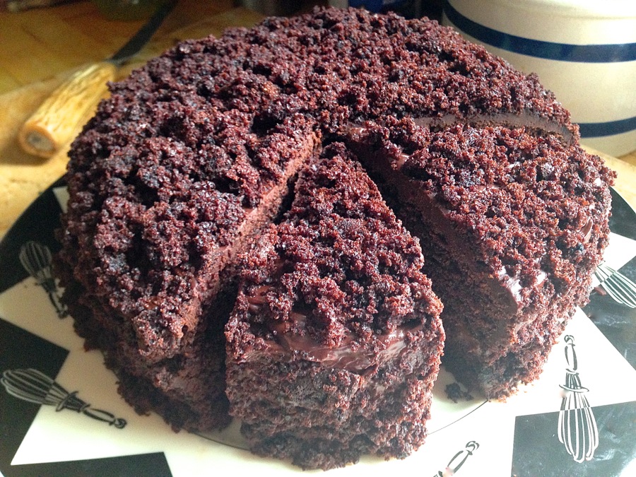 So: soft (yet firm enough to slice) filling; fudge-like ganache icing; the cake itself, with its moist crumb and wonderful chocolate flavor; and those soft crumbs pressed over everything... well, it's not surprising everyone loves this distinctive cake.
