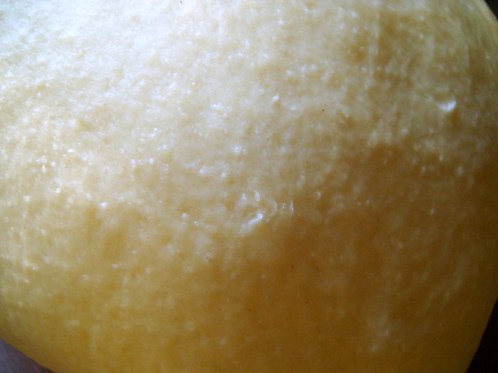 Can you see the semolina "bits" in the dough? Like poppy seeds in a muffin, these little bits will pop when you chew them, giving the crust texture.