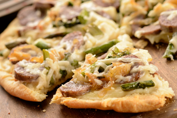 What's the plan for toppings? Probably my all-time favorite, and one I recommend to anyone who will listen. Caramelized onion, roasted asparagus, and sausage.