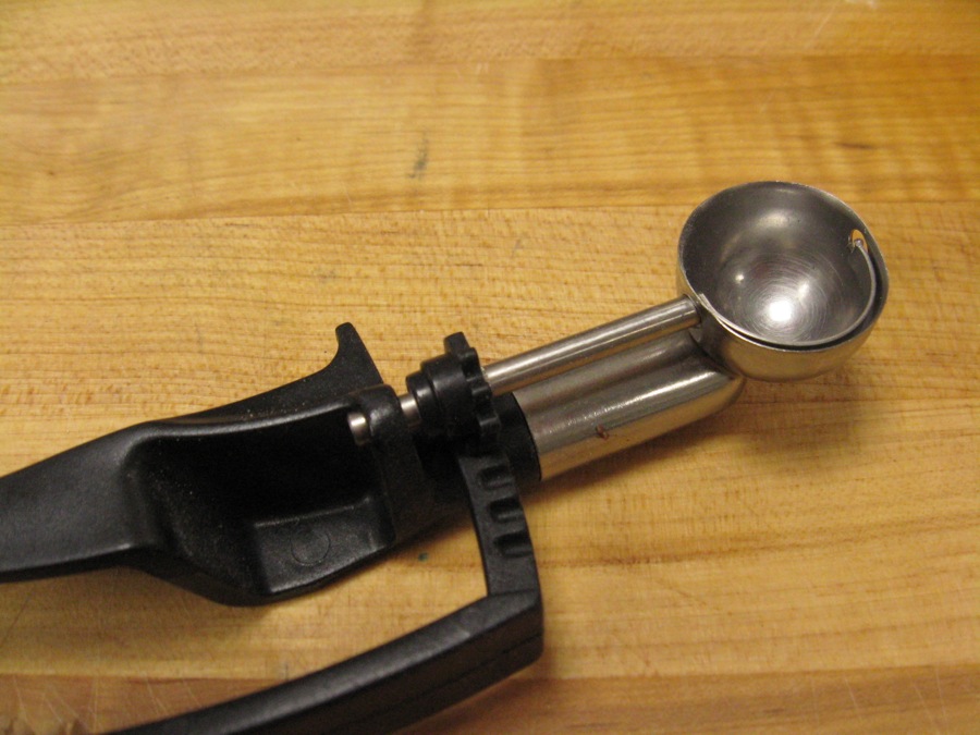 Liberally grease your cooking surface and drop the pancake batter by generous tablespoonfuls onto the griddle or into the pan. A tablespoon cookie scoop works well here.