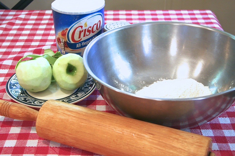 I started with the cookbooks that my mom had received as wedding presents in 1956 (and passed on to me), then branched out and looked at apple pie recipes in contemporary cookbooks and online. The recipes were all basically the same (flour, salt, shortening, water), and I decided that the point wasn't finding the best or most reliable formula – yet – but rather getting my hands in the flour and messing around with the ingredients.