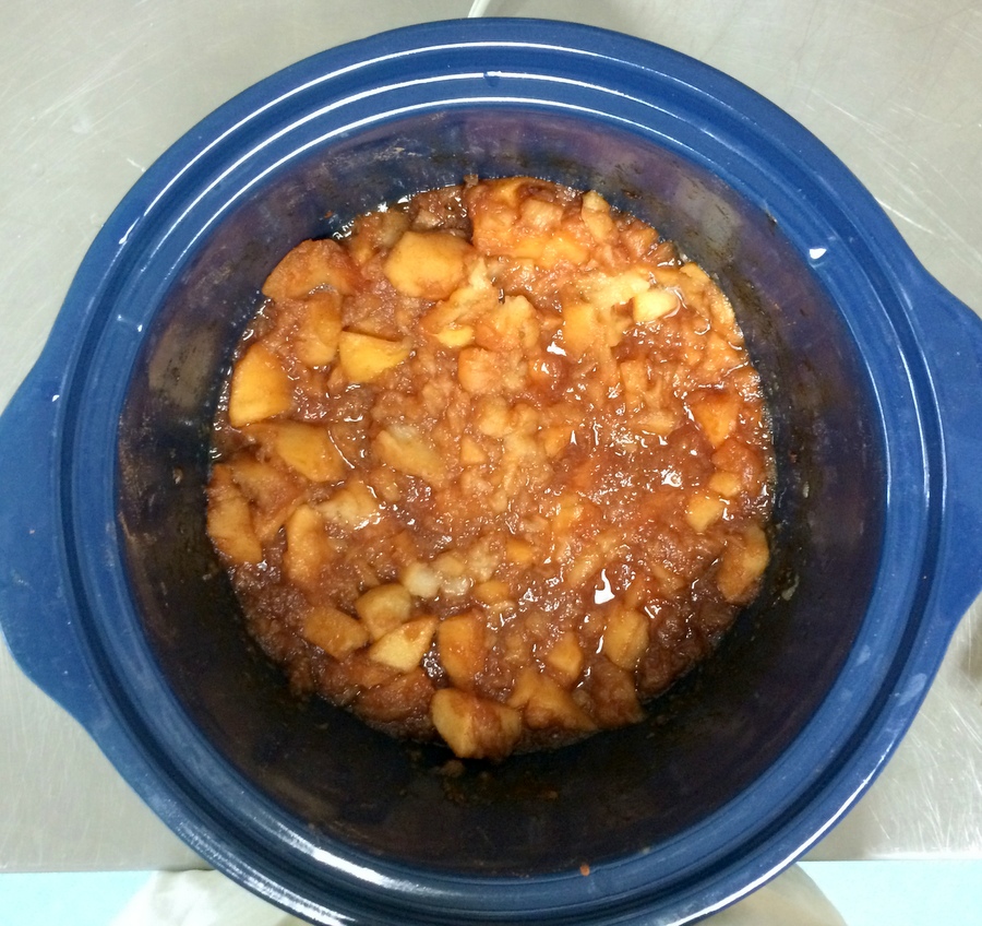 Set the cooker to high, and let cook for 2 to 3 hours. I know most cooker recipes don't want you to lift the lid, but for this one I do recommend lifting the lid occasionally to stir and break down the apples, plus prevent scorching from the sugar sitting in one place too long.