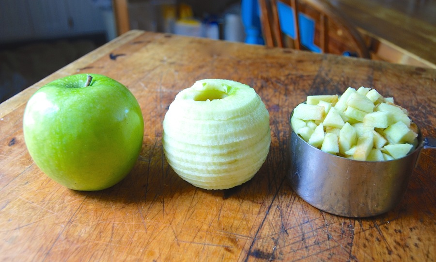Or the apple crisp recipe says, "6 cups chopped apples." You're on your way to the store – how many apples do you need to buy to end up with 6 chopped cups?