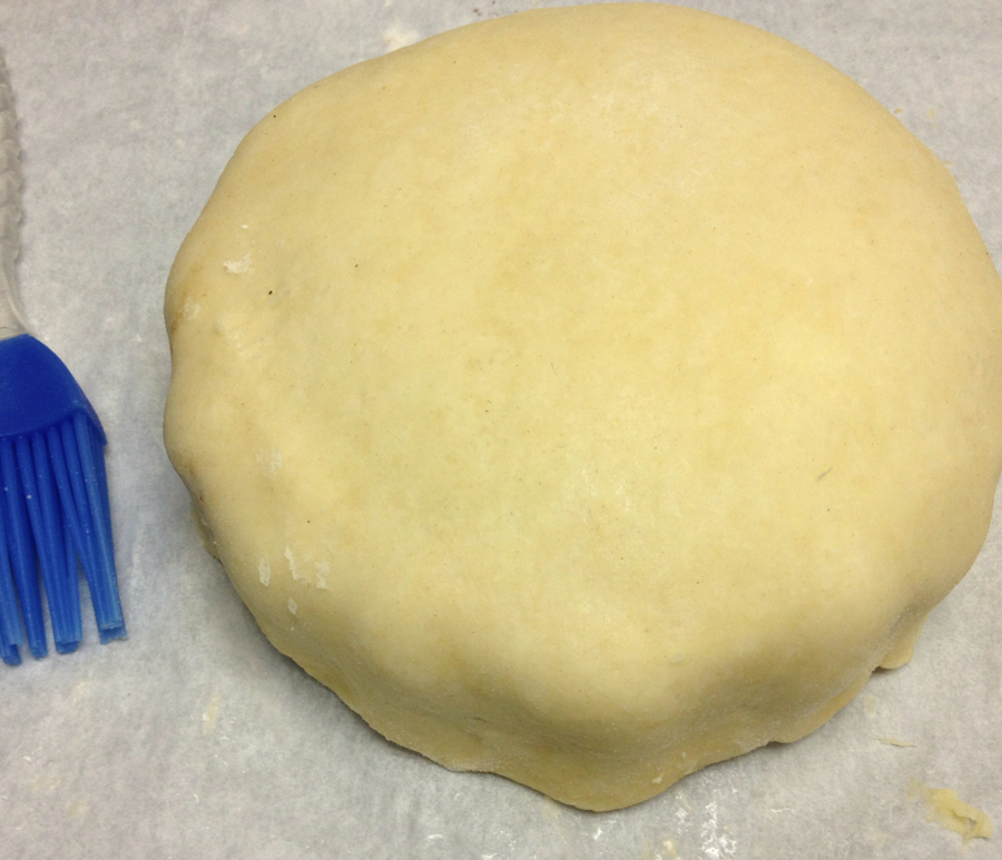 Smooth it down all around. Use scrap and trim from the pastry to create a nice design on top. I use egg substitute to "glue" them in place, and also as an egg wash over the whole pastry. At this point you can freeze your creation for up to 2 months.