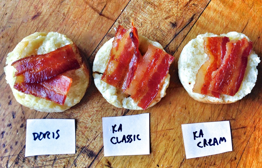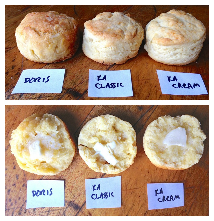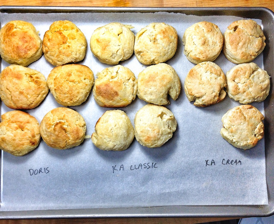 Peter says he thinks the King's cream biscuits and Doris' are the most tender. Aime likes the cream biscuits' flavor best. But really, there's no slam-dunk Biscuit Throwdown winner.